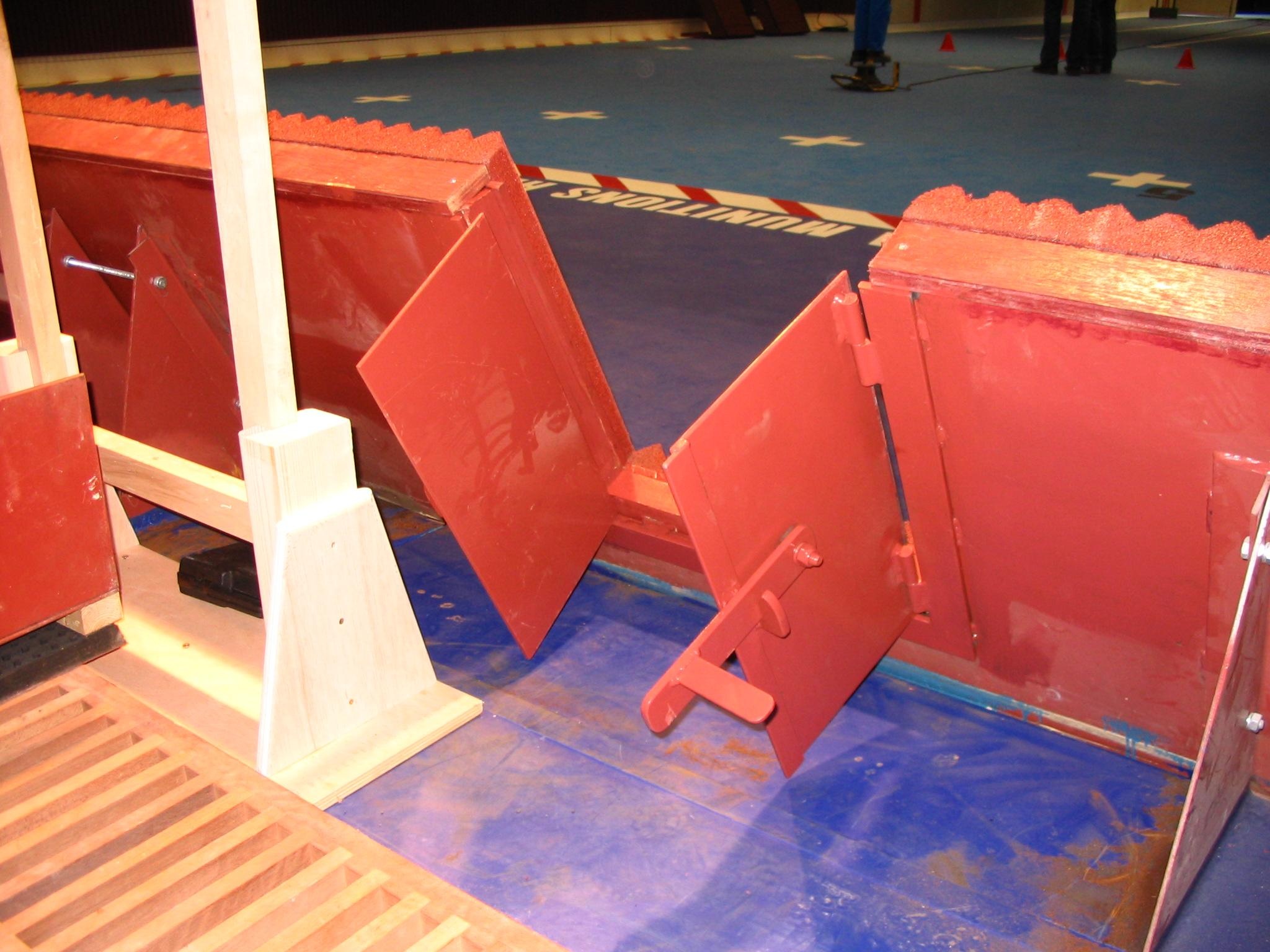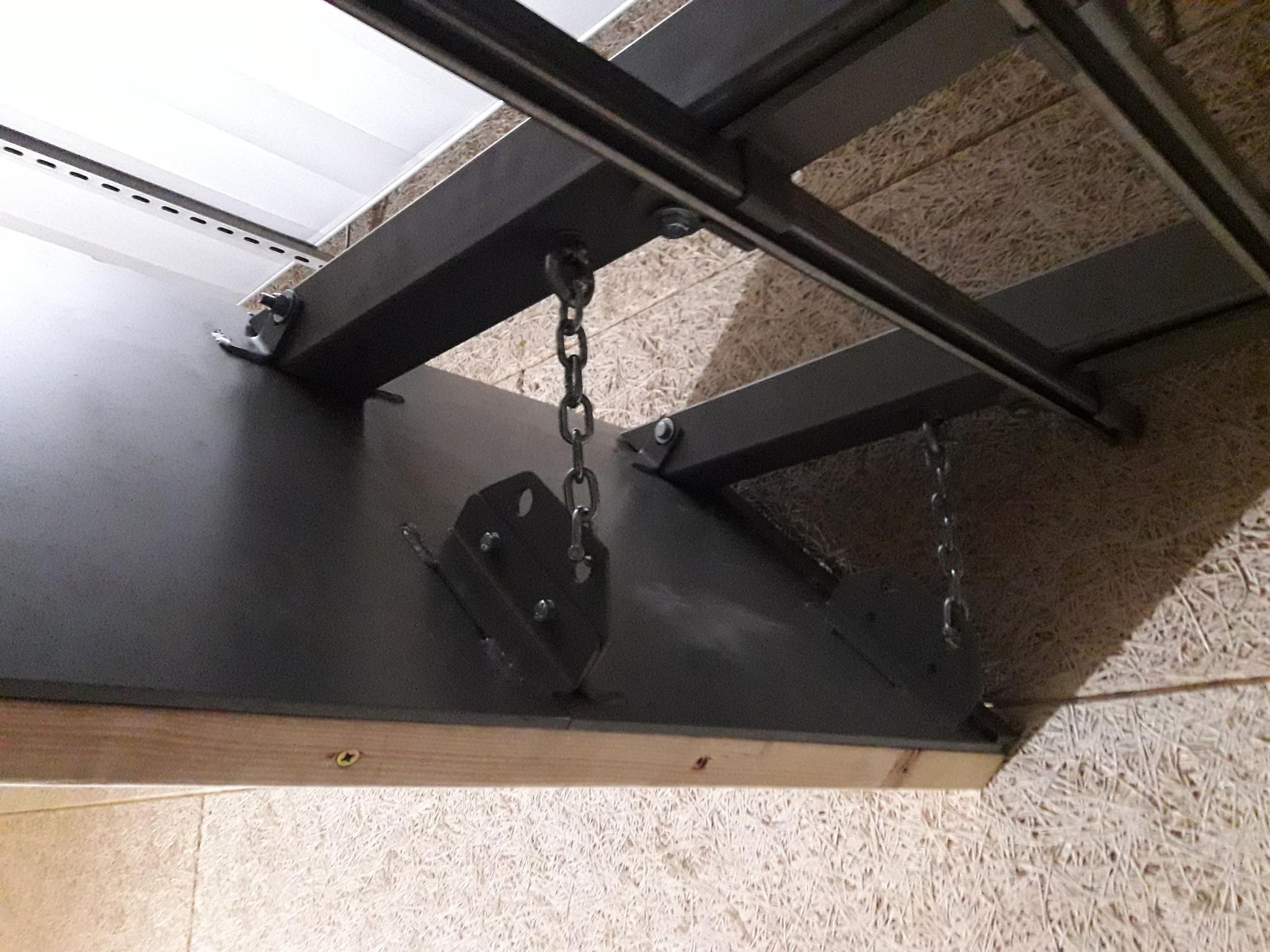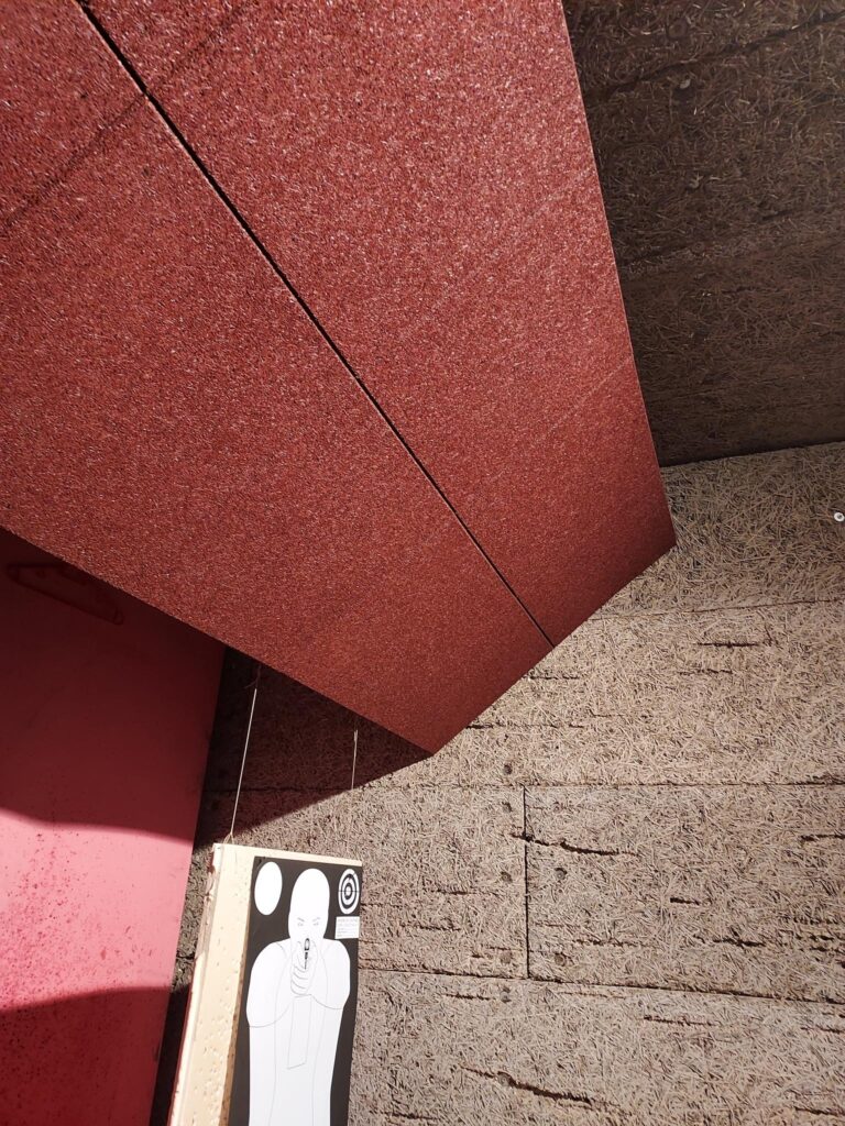They consist of a ballistic steel plate (whose thickness depends on the ammunition used), battens, plywood panels and rubber tiles.
