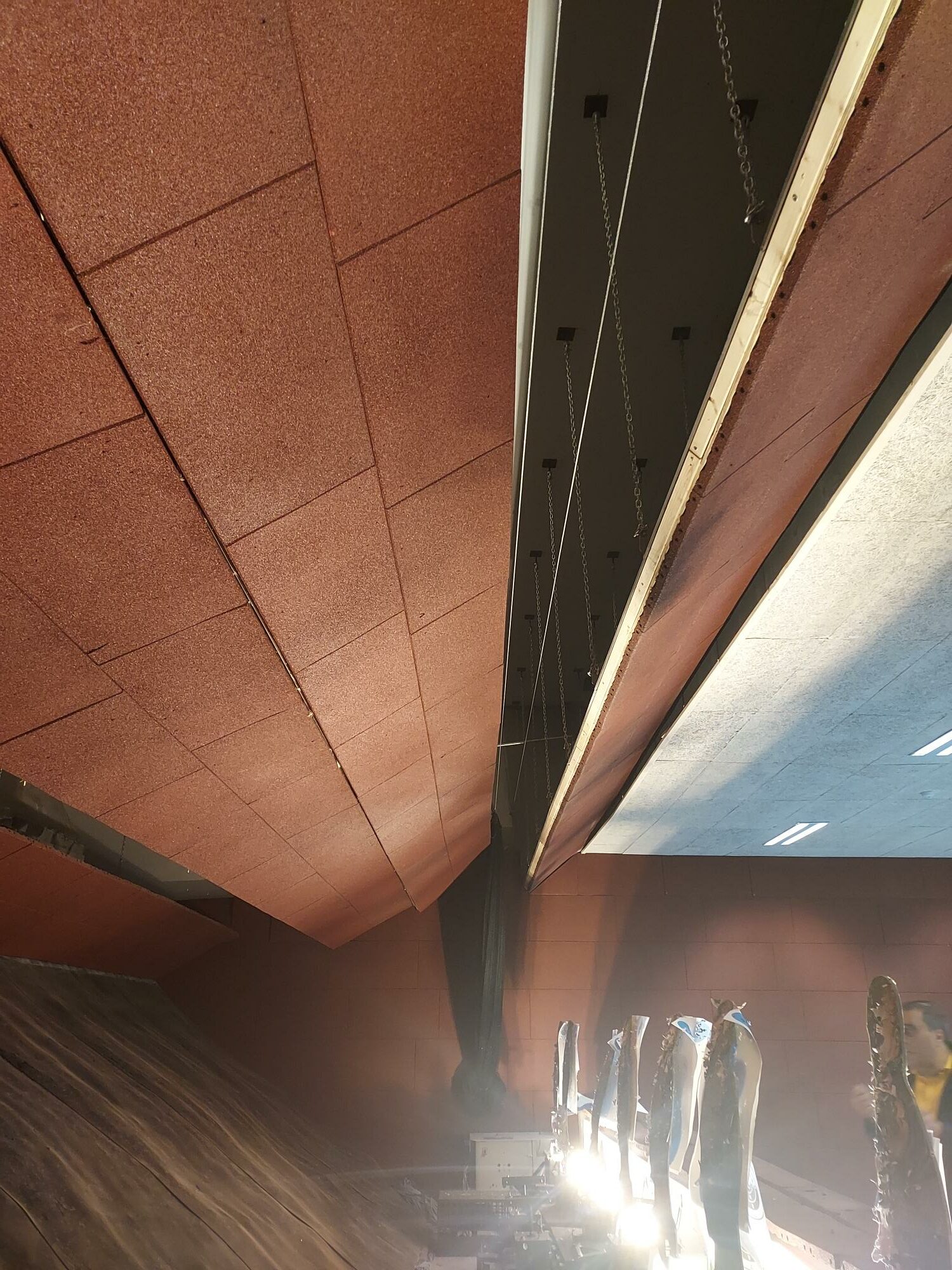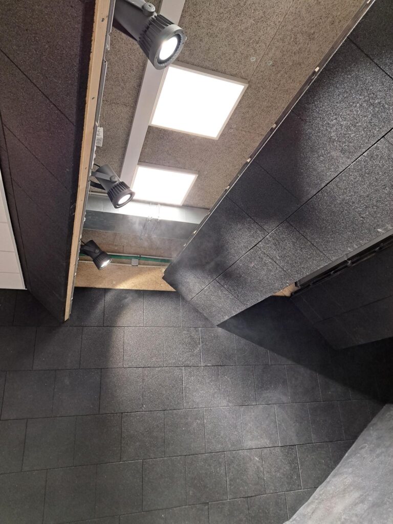 Our baffles can be placed on the ceiling, on the sidewalls or on the ground depending on the equipment to be protected (lighting, speakers, cameras, control systems, targetry, flash-ball nets, …). Their position and size are calculated based on the shooting conditions and distances.