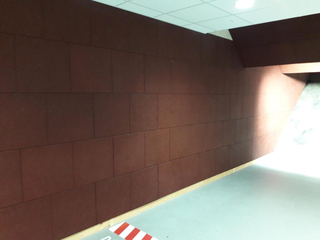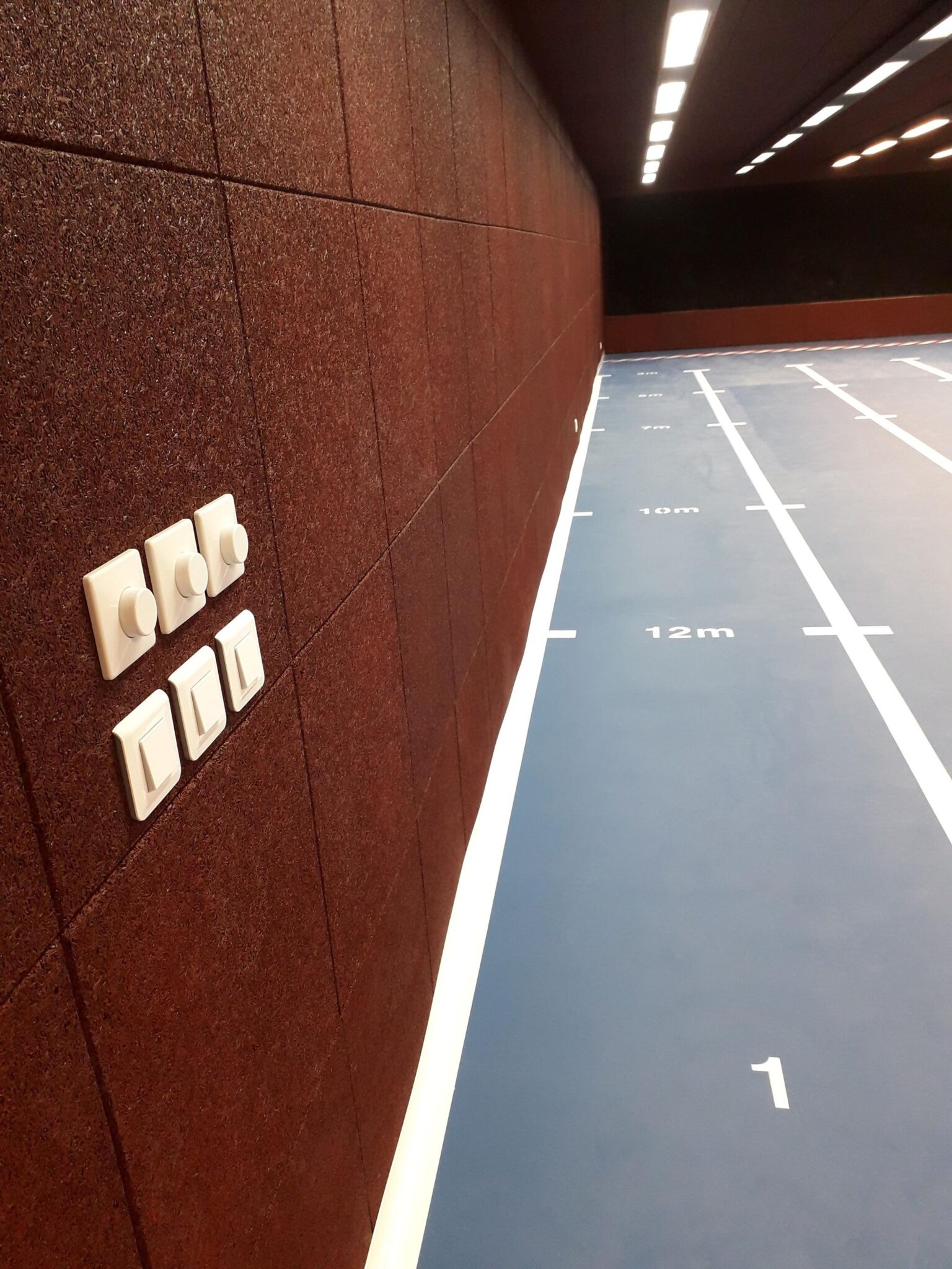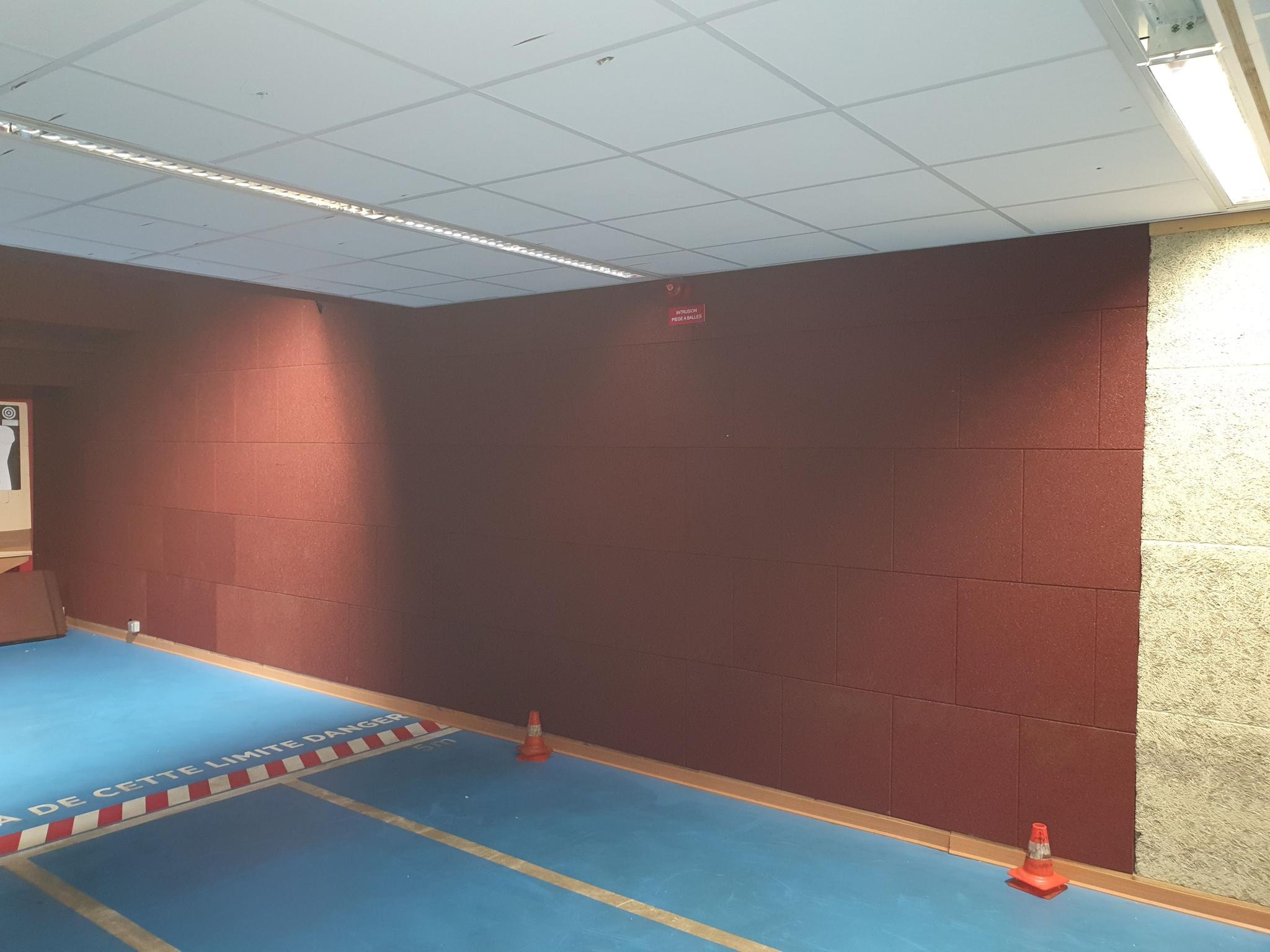 The standard ballistic walls is placed on the sidewalls in front of the bullet trap over a minimum length of 8 meters and cover the wall from floor to ceiling.