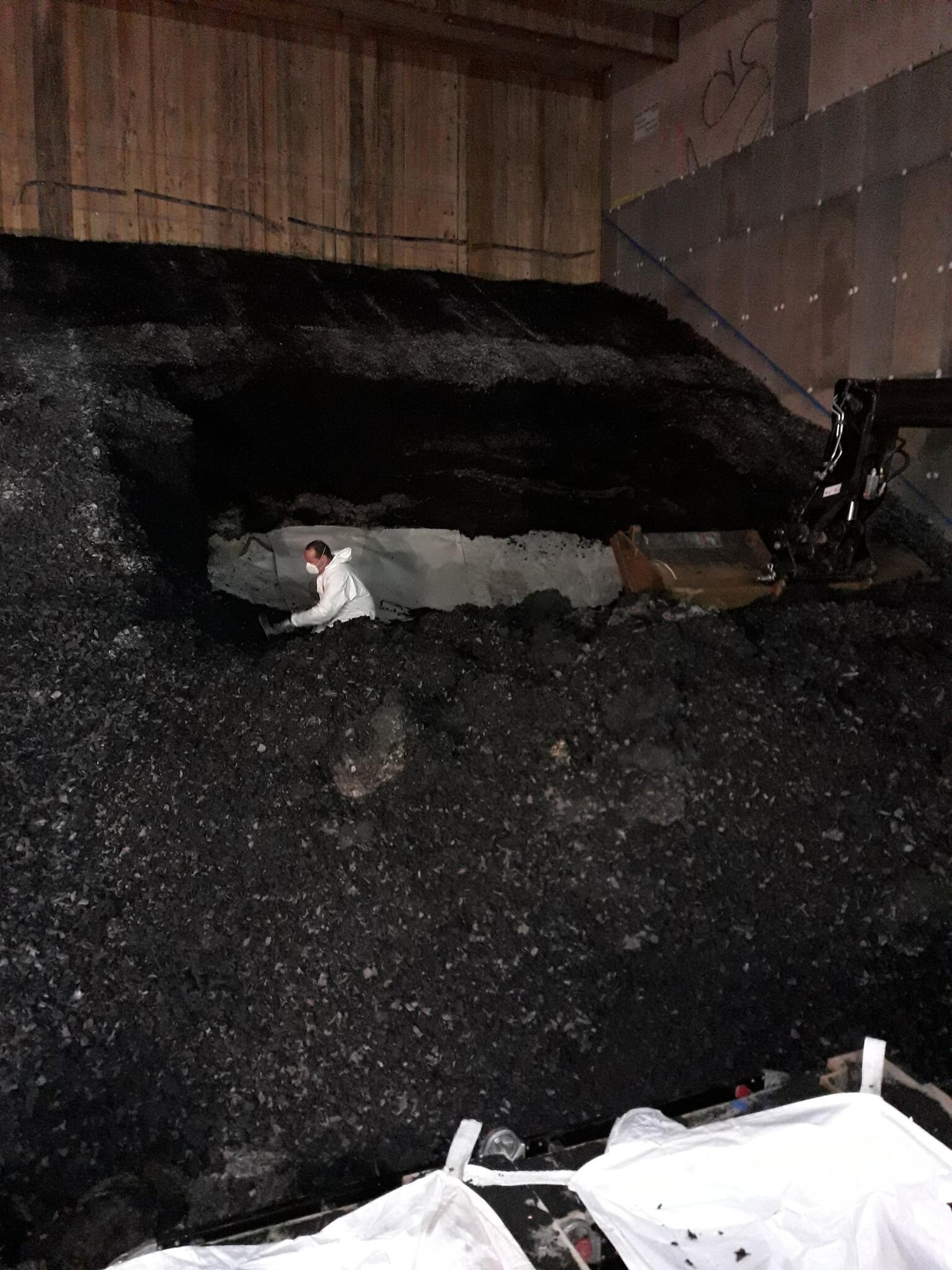 - Enlèvement des granulats synthétiques au niveau des zones d’impacts ou sur toute la largeur du piège à balles/butte de tir