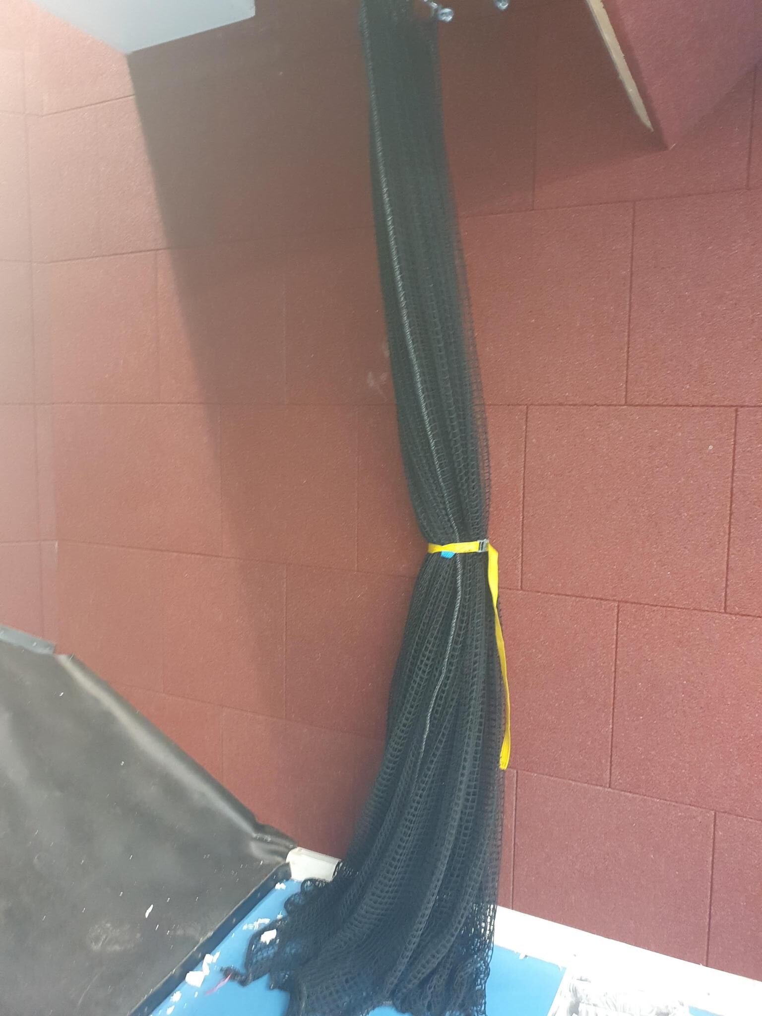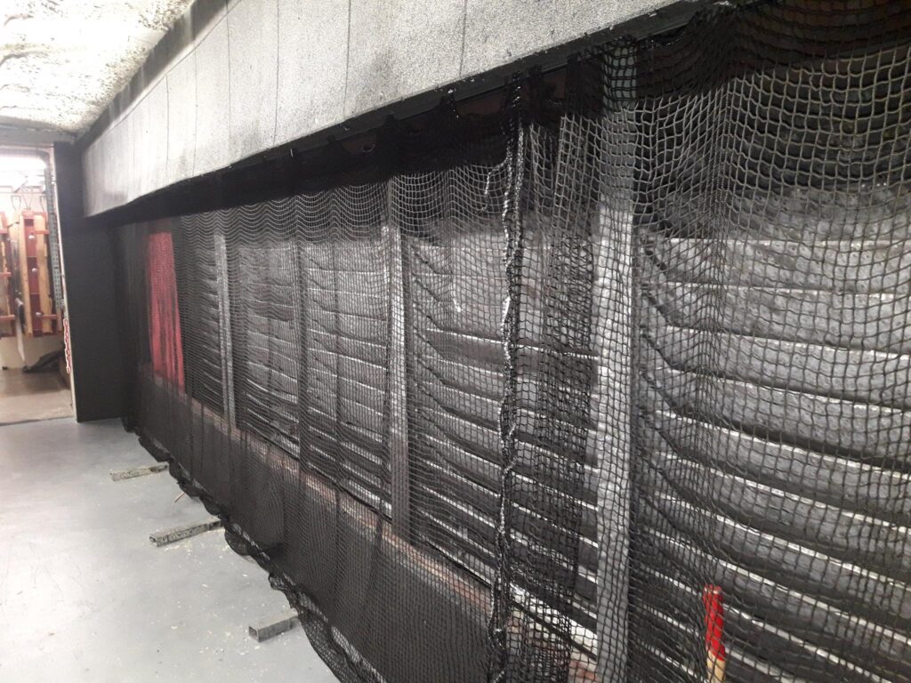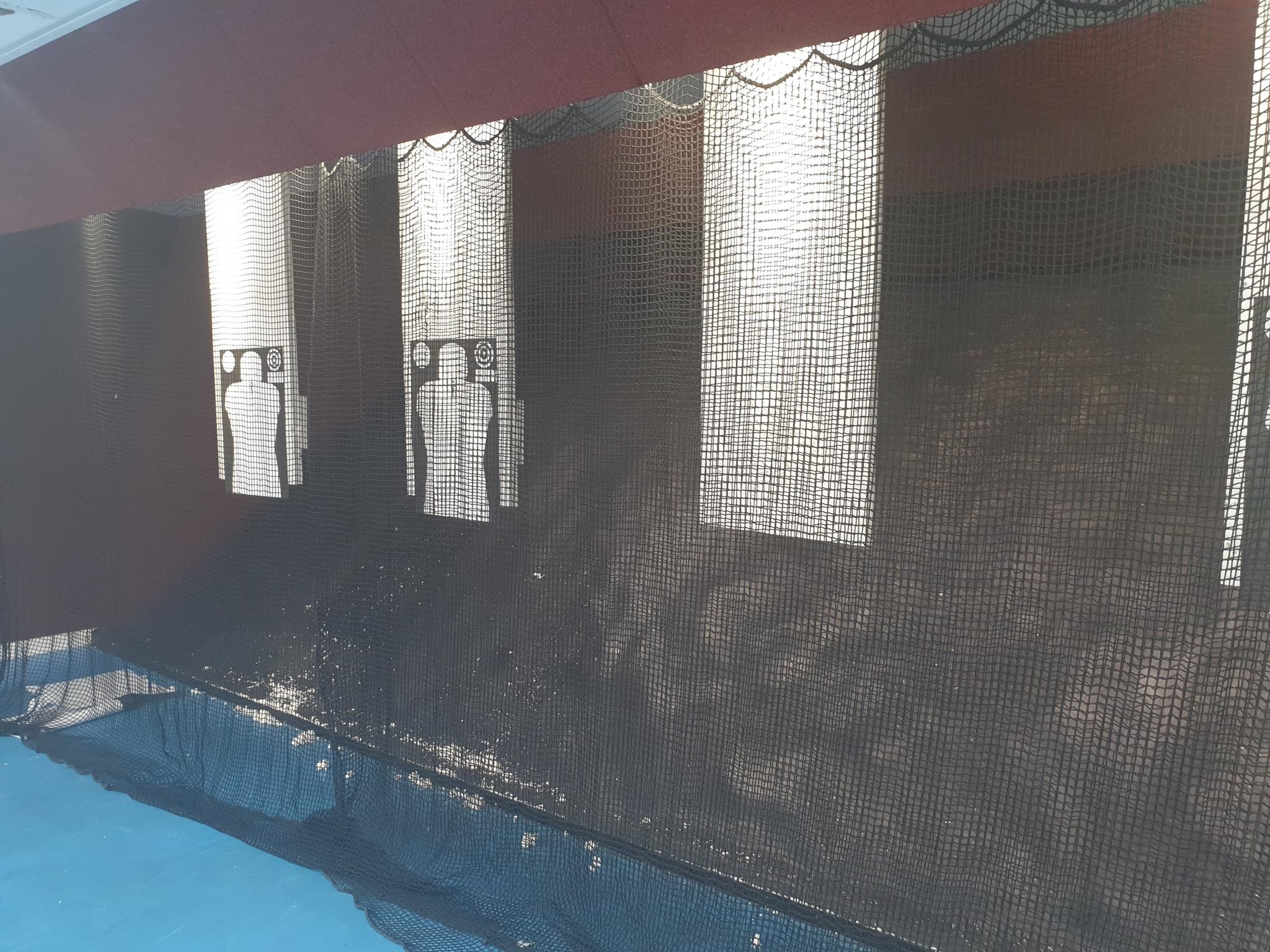 Het wordt meestal voor de terugslagwerende gordijnen geplaatst en loopt over een meeraderige staalkabel. Als de schietbaan te breed is, wordt het in twee delen gesplitst. Uit veiligheidsoverwegingen kan het flashball-net aan één kant van de schietbaan worden opgerold en worden beschermd door een gepantserde zijdeflector met terugslagwerende platen.