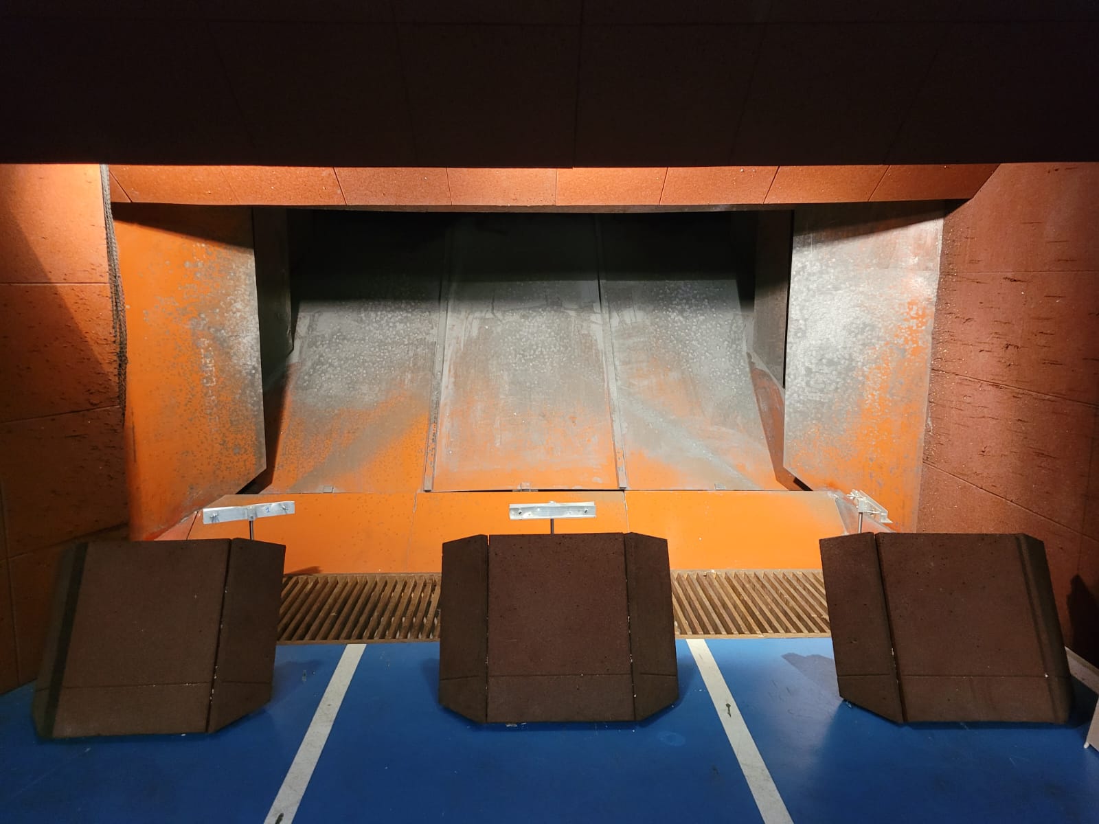- Chambres de décélération faisant partie intégrante du piège à balles et se situant à hauteur d’homme à l’arrière du piège à balles