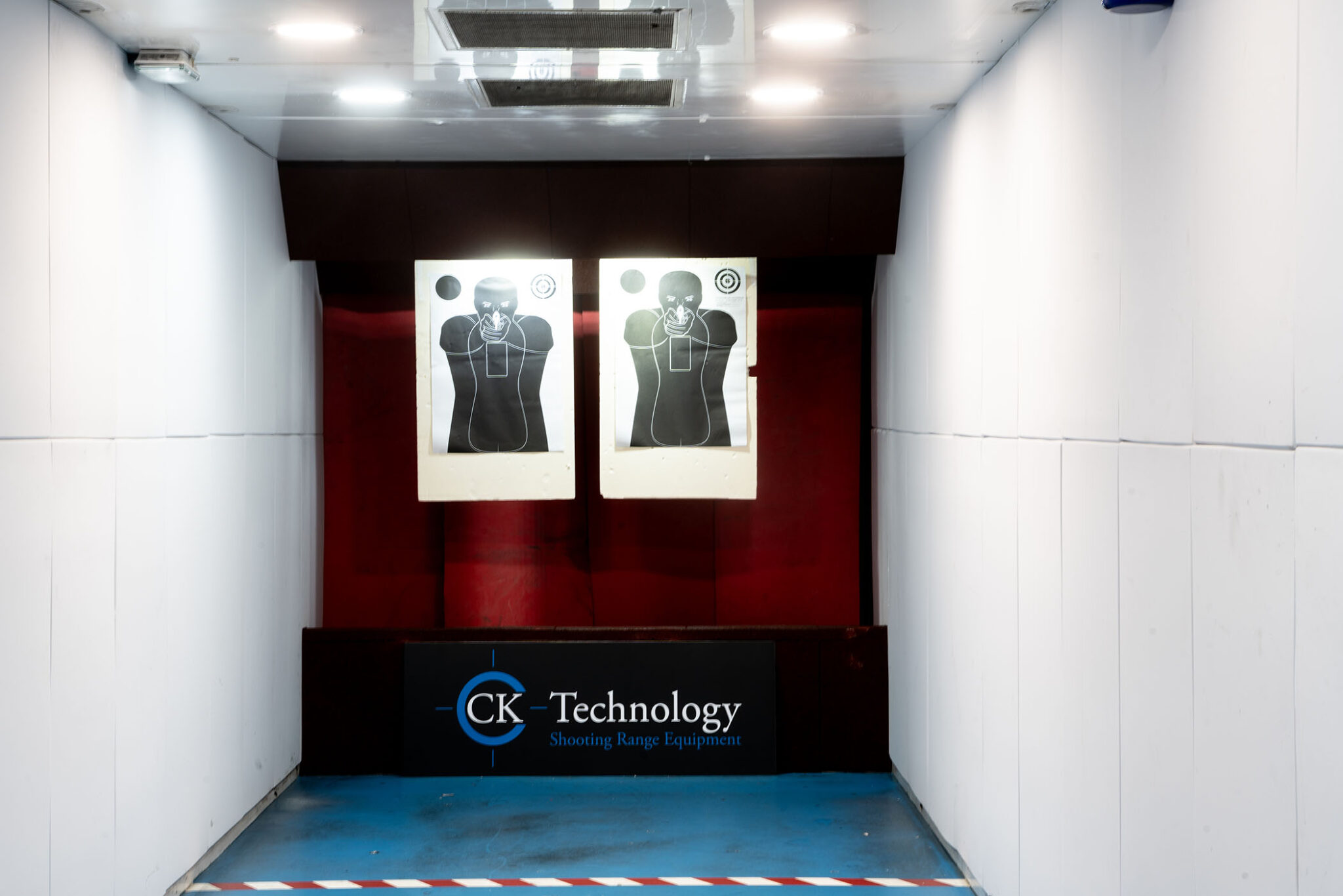 - Composition : salle du moniteur, galerie de tir, ciblerie (en option), piège à balles.